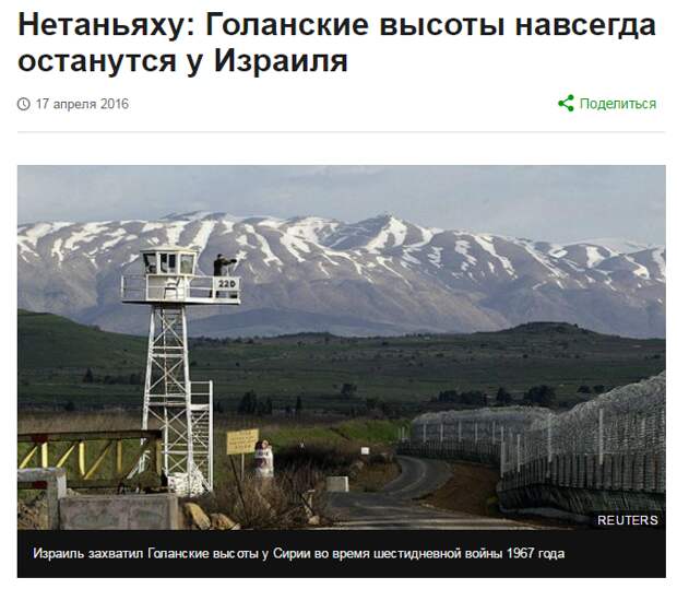 Еще в 90х, начале 2000х Израиль учитывал опасность военного конфликта с Сирией и ее союзниками, давление международной общественности и все-таки не исключал определенные варианты частичного возвращения Голанских высот Сирии, то сейчас об этом не может быть и речи.
